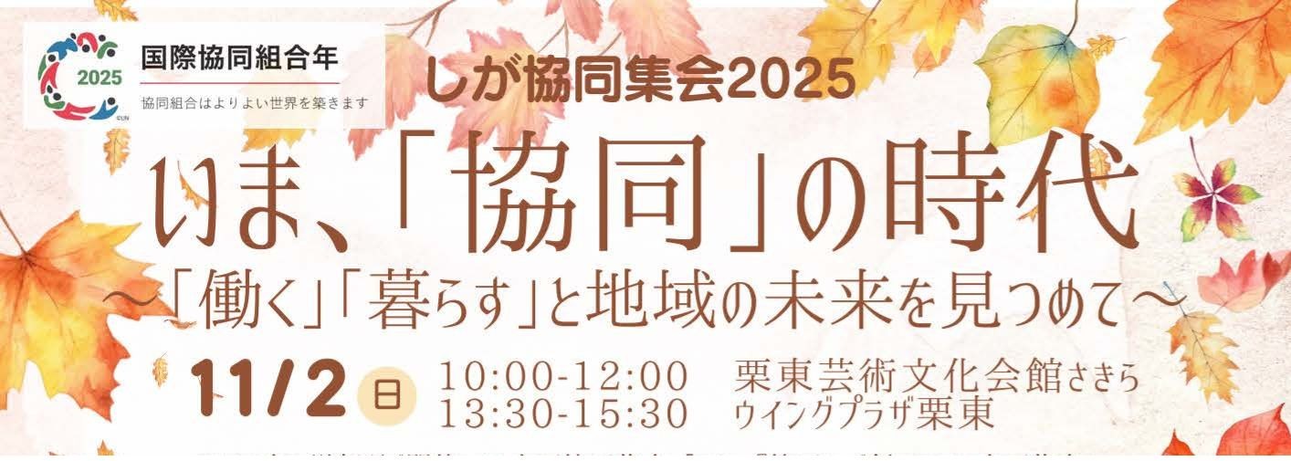 そこで、2017年の全国協同集会の趣旨を引き継ぎつつ、国際協同組合年の記念行事として、滋賀協同集会2025「いま、協同の時代 ~「働く」「暮らす」と地域の未来を見つめて~」を開催します。